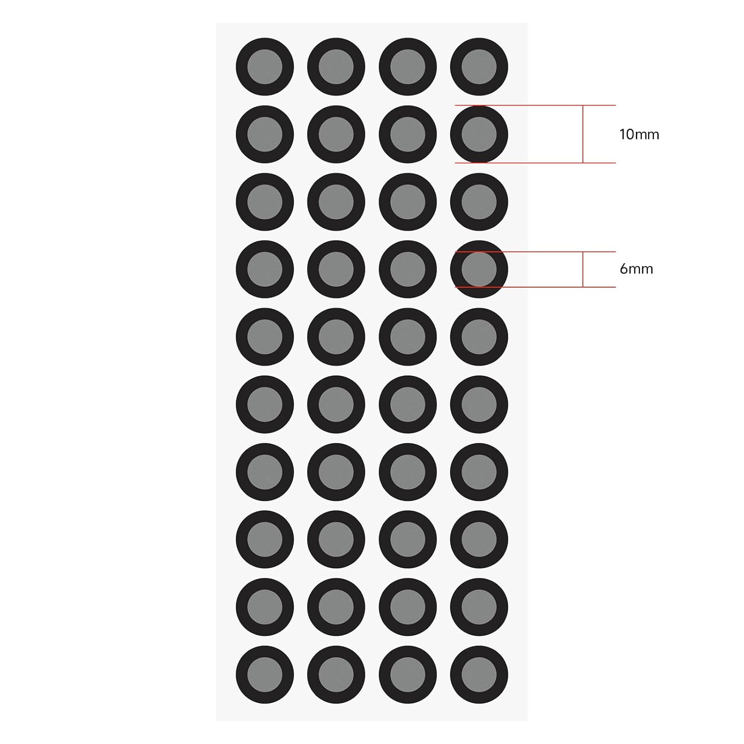 - High reflective 3D Scanning dots with 6mm Inner diameter and 10mm outer diameter, Round on adhesive foil as tear-off pad,