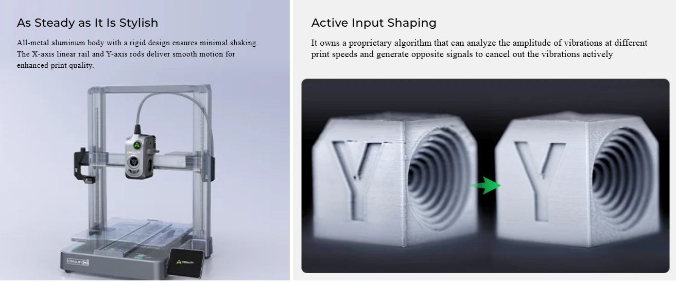 - Fast Print Speed: 500 mm/s max speed; 12000 mm/s² max acceleration