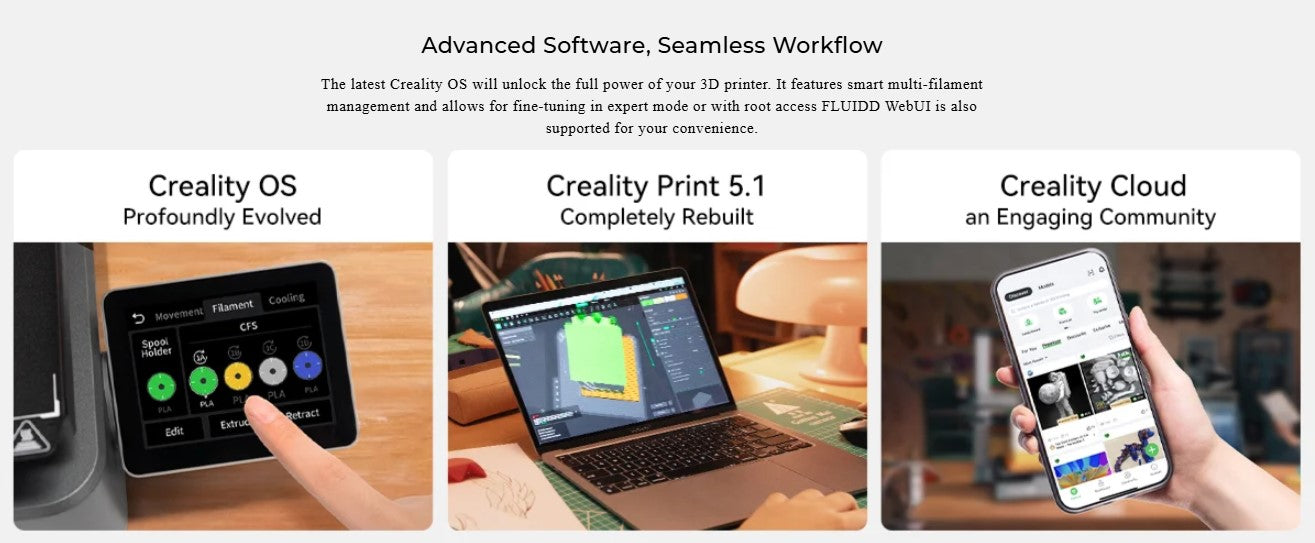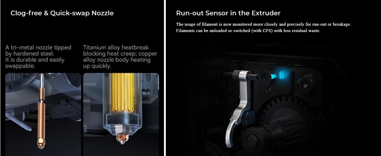- For hyper-speed 3D printing: it is recommended to use Creality Hyper Series filaments, as standard filaments may not melt quickly enough during printing, potentially leading to filament jams.