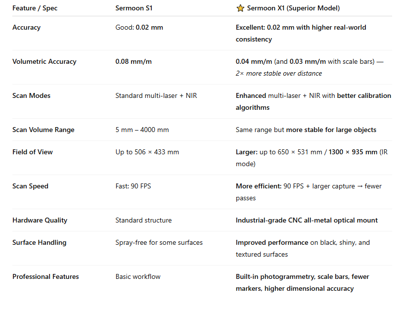 Creality 3D Scanner Sermoon X1, 3D Scanner for 3D Printing with Wireless Scan Bridge, 0.02mm High-Precision, 4-in-1 Multi-Laser & NIR, 90FPS